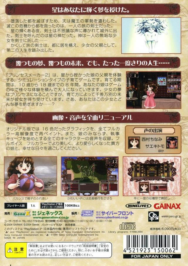 《美少女梦工厂2》自从第一次在PC 9801上登场以来,先后向PC/AT、TOWN、PC-E、WINDOWS、MAC、SS、3DO等多个平台移植。本次的《美少女梦工厂2》的PS2版可以说是“究极”的版本。以前的16位色画面现在将以全彩表现。